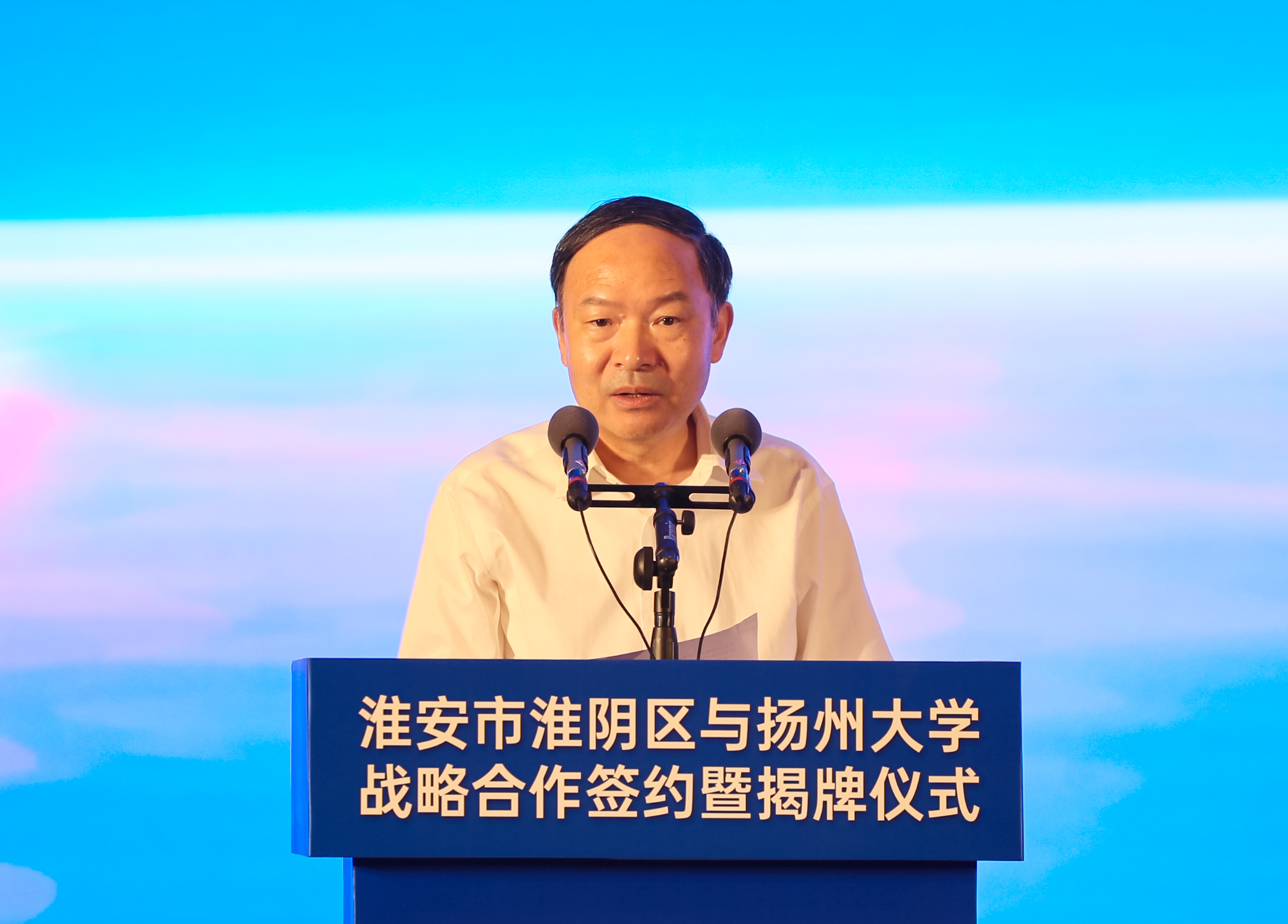 8月26日,学校与淮安市淮阴区人民政府战略合作签约暨揭牌仪式在淮安举行。校党委书记焦新安,淮安市副市长王向红,淮阴区委书记王建军出席仪式并讲话。副校长龚卫娟,淮安市卫健委主任郑东辉,淮阴区领导黄克涛、李冬生、胡珍、范晓东等出席仪式。淮阴区委副书记、区长陈张主持仪式。