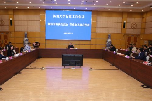 10月27日上午,学校在荷花池校区教学主楼二楼多功能厅召开“加快学科优化组合,深化交叉融合发展”行政工作会议。校长焦新安主持会议并讲话。副校长黄建晔、陈国宏、洪涛、陈亚平、俞洪亮出席会议。