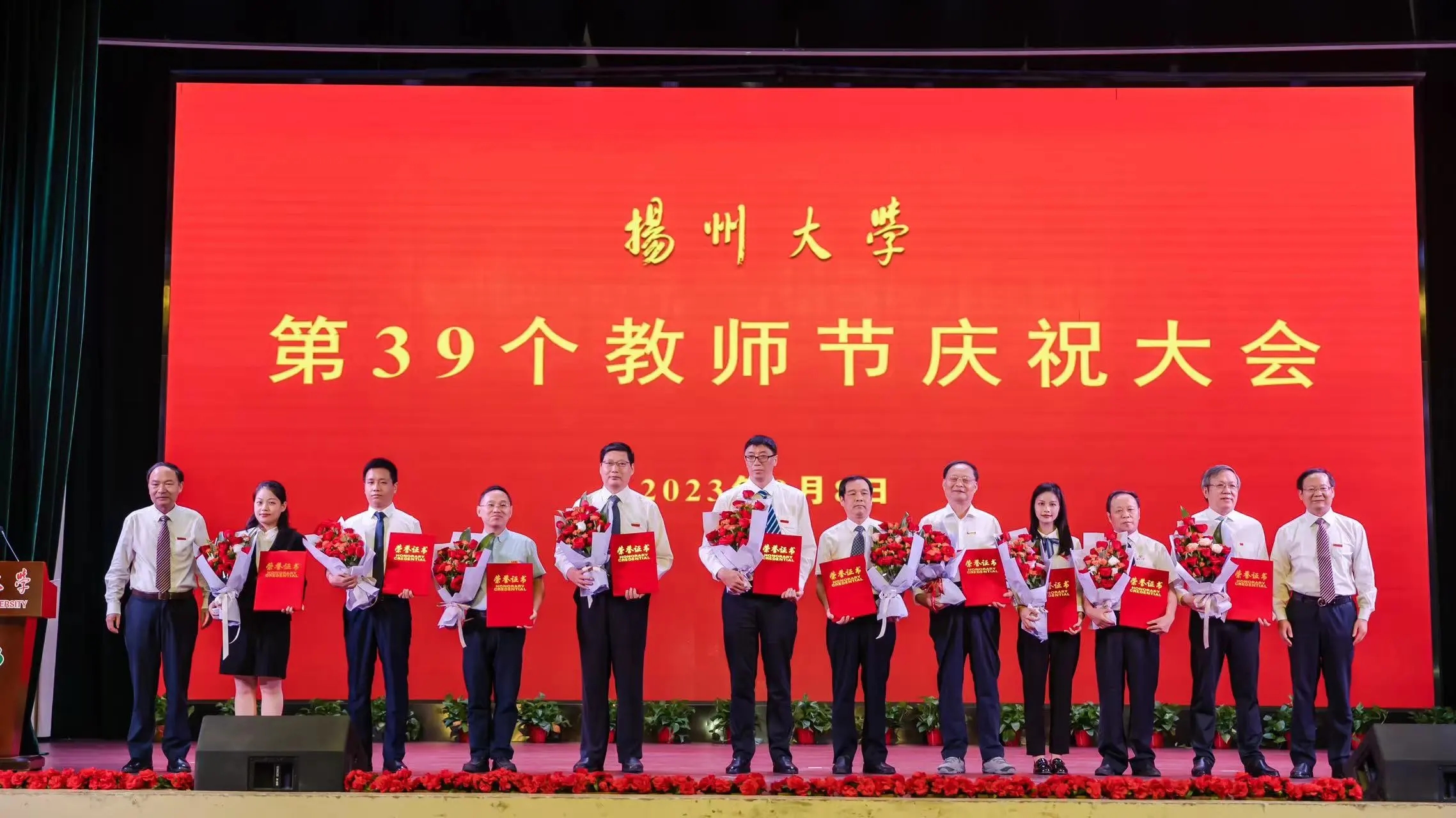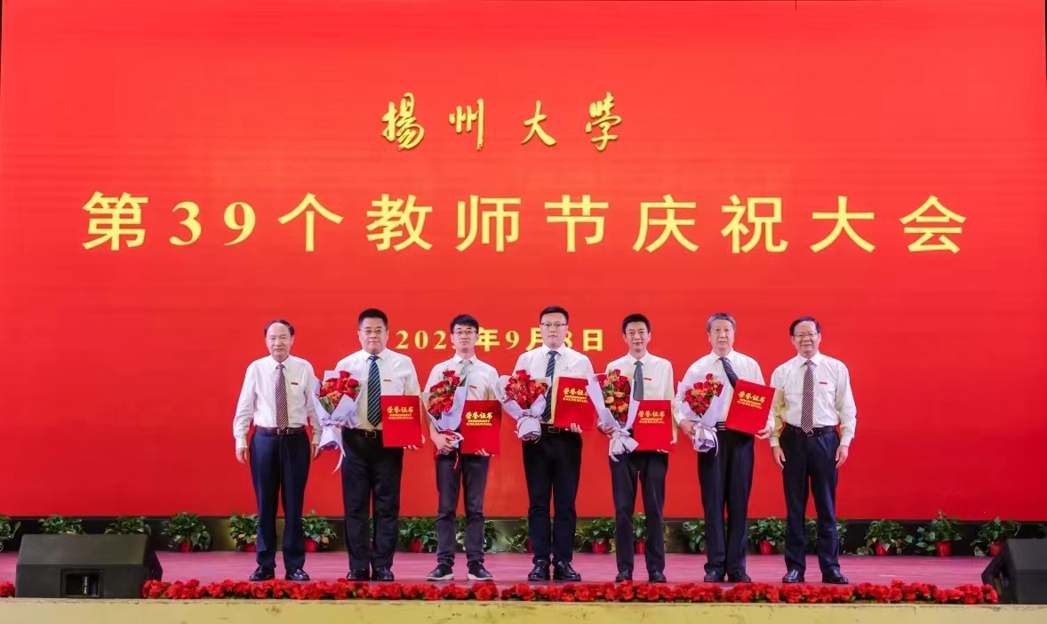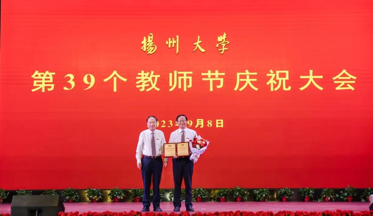 9月8日下午,学校在文汇路校区大礼堂举行第39个教师节庆祝大会,隆重表彰2023全国“最美教师”、何梁何利基金科学与技术创新奖获得者、第三届全国创新争先奖获得者等一批先进典型。校党委书记焦新安、校长丁建宁共同为国家级教学成果一等奖等奖项获得者颁奖并合影留念。丁建宁发表热情洋溢的讲话。校党委副书记周如军主持大会,蒋乃华、赵文明、龚卫娟、邱庆峰、韩杰、蔡颖蔚等校领导为有关获奖者颁奖。