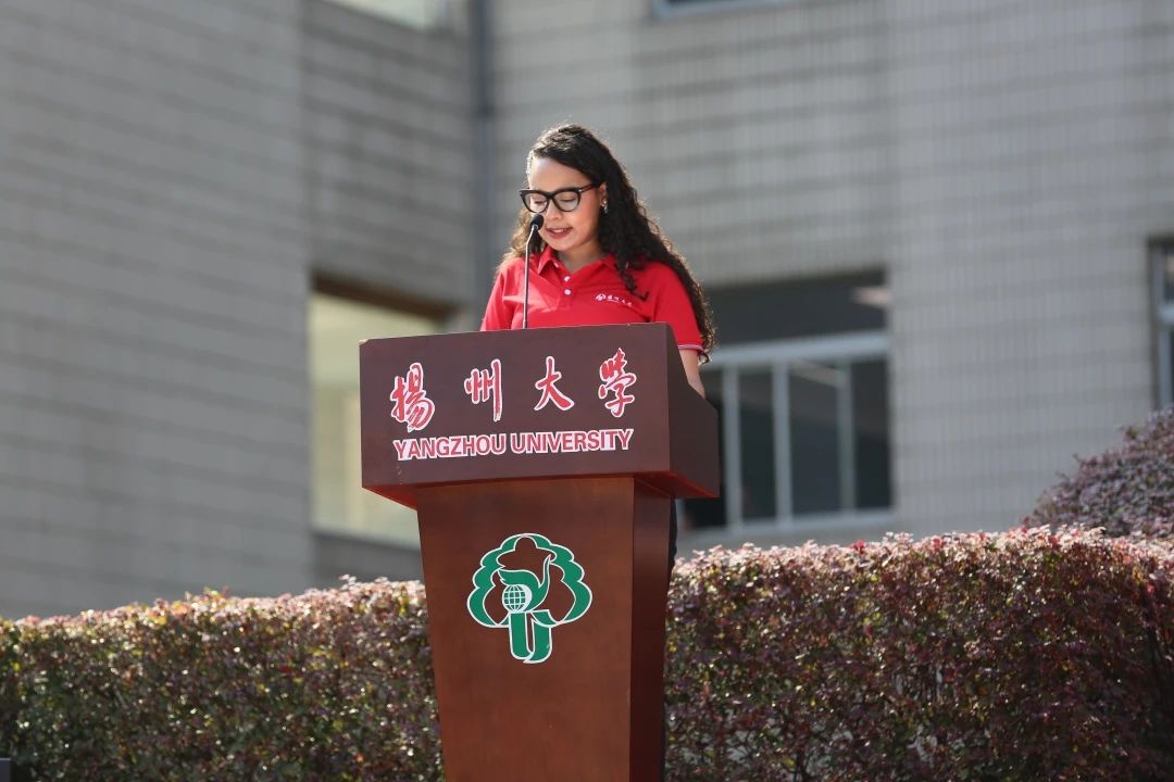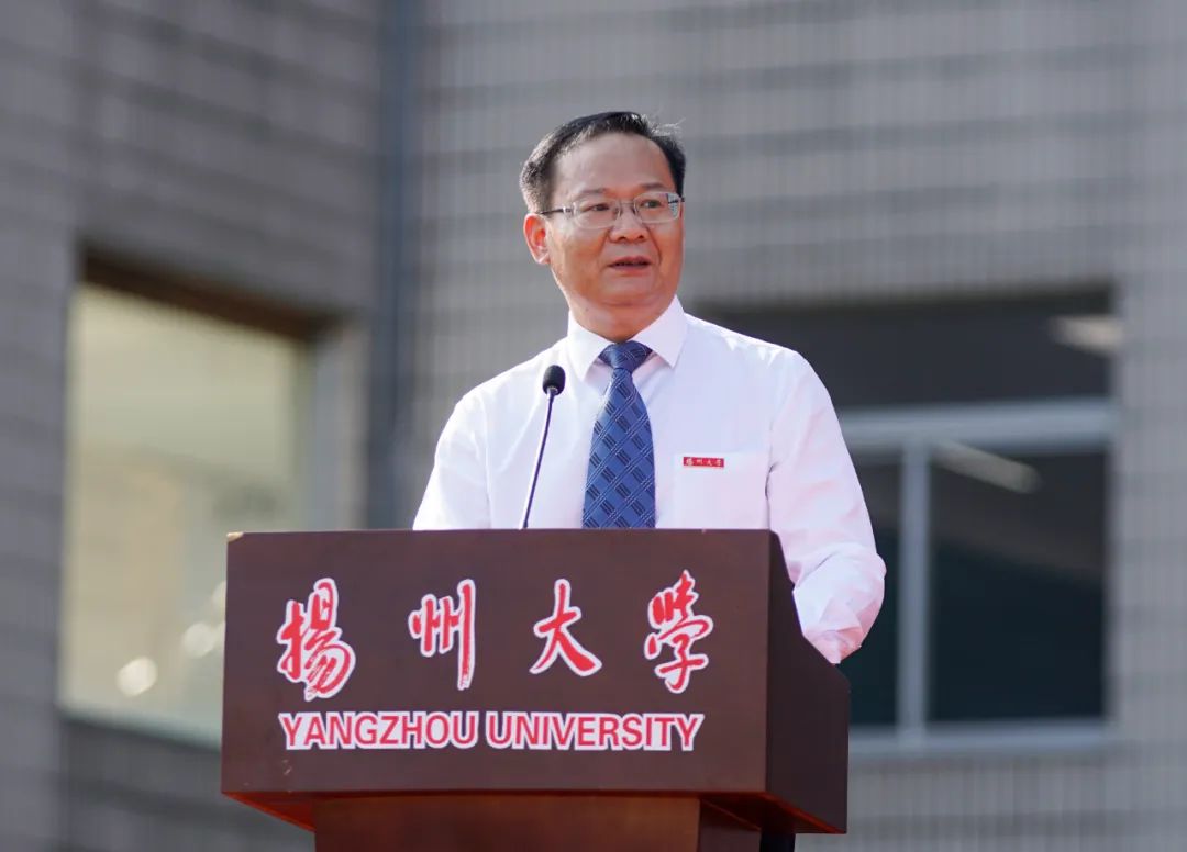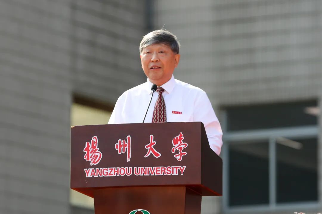 校友代表、第八届鲁迅文学奖获得者庞余亮深情回顾了在校求学经历,他勉励全体新同学怀有一颗积极向上的心,树立远大理想,不断超越自我,努力成长为参天大树。教师代表、中国工程院院士、农学院教授张洪程希望全体新生胸怀世界,心系党和国家;勤奋学习,养成良好习惯;躬耕实践、弘扬创新精神,成为祖国的栋梁之才,写就大学时代的美好和精彩。老生代表、数学科学学院王梦杰号召学弟学妹们为学校谱写高水平研究型大学现代化建设新篇章贡献青春力量。本科生新生代表、医学院孙路翔表示,要笃志弘毅,披荆斩棘,奋楫扬帆,不负时代。研究生新生代表、外国语学院何泊稼深情回顾了在扬大的求学之路,并表示将以奋斗之姿跑出青春加速度和最好成绩。国际学生新生代表、旅游烹饪学院巴西籍学生卫敏表示,文化的碰撞让自己看到了更广阔的天地,未来将追逐更大梦想。