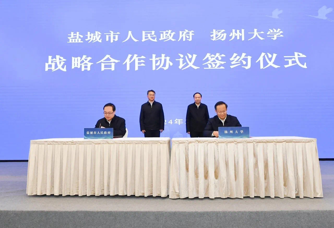 3月1日,学校与盐城市人民政府举行战略合作协议签约仪式。盐城市委书记周斌、我校党委书记焦新安出席仪式并共同见证签约。盐城市委副书记、市长张明康与我校校长丁建宁代表双方签署战略合作协议。盐城市委常委、常务副市长勾凤诚主持签约仪式。盐城市委常委、秘书长薛盛堂,副市长王娟,我校党委副书记周如军,副校长赵文明,校纪委书记、派驻监察专员邱庆峰等出席仪式。