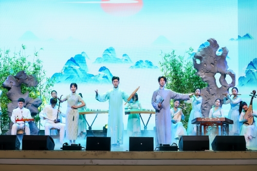 文艺汇演以“青春正飞扬”为主题,分为“乘风立潮头”“扬帆正当时”“昂首向未来”三个篇章,以歌曲演唱、朗诵、音诗画、舞蹈、民乐奏唱等多种形式,高质量展演了《校园的雕像》《踏青》《文学里的青春》等节目,充分展现了扬大学子的青春风采。现场推出了青春MV《青春万岁》和主题微电影《追风的人》,展现出新时代扬大学子志存高远、斗志昂扬的精神风貌。