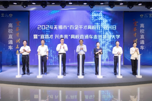5月23日,2024无锡市“百企千才高校行”宜兴日暨“宜荟才 兴未来”高校直通车走进扬州大学活动在扬子津校区举行。校长丁建宁出席活动并致辞。副校长蔡颖蔚,宜兴市委常委、组织部部长钱怡,宜兴市副市长张达志等出席活动。
