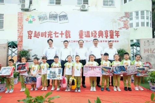 5月31日,学校幼教服务中心三所幼儿园分别举行“六一”庆祝活动。校长丁建宁,副校长刘巧泉,校纪委书记、派驻监察专员邱庆峰等一行走进幼儿园,与孩子们共庆“六一”,为他们送上节日礼物和美好祝福。