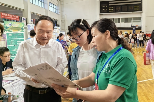 在南京市宁海中学,焦新安为“宁海中学扬州大学优质生源基地”授牌,并前往招生宣传咨询点位,为考生和家长介绍我校办学特色、招生录取政策、就业前景等基本情况。咨询现场气氛融洽、互动积极。