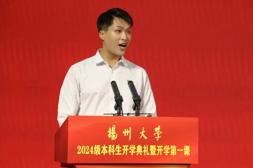 校党委书记焦新安以《高擎精神旗帜 赓续百廿荣光 努力做有志、有识、有为的新时代扬大好青年》为题,从大力弘扬爱国主义精神、坚苦自立精神和改革创新精神三个维度,为新生们讲授了精彩的“开学第一课”。焦新安说,扬州自古以来就是适宜生活学习的“好地方”,学校可以为大家求学问道、创新创行、筑梦逐梦提供强劲的支撑。他希望,广大新生弘扬爱国主义精神,在“小我融入大我”的生动实践中擦亮青春底色;弘扬坚苦自立精神,在“理论联系实际”的学习实践中提高青春成色;弘扬改革创新精神,在“创新点亮梦想”的探索实践中凸显青春亮色,从“好地方”出发,向好未来而行,努力成为有志有识有为的新时代扬大好青年。