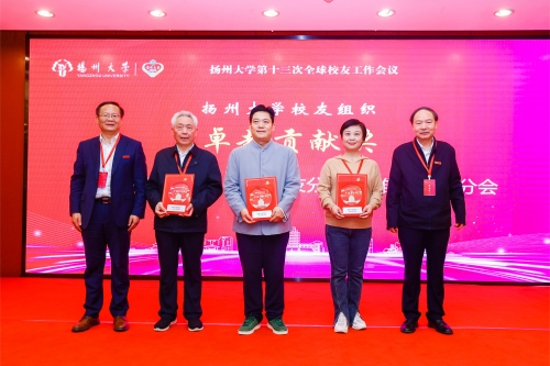 大会还分别向连云港、珠中江校友分会以及福建、南京校友分会颁发“扬州大学校友组织突出贡献奖”和“扬州大学校友组织贡献奖”荣誉证书及奖牌,并举行了“扬州大学全球校友工作会议”会旗交接仪式。