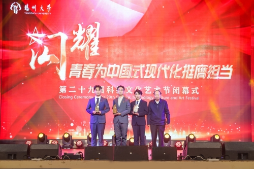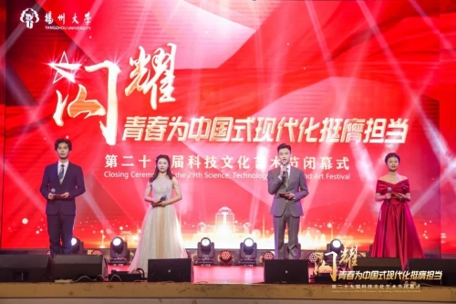 12月9日,第29届科技文化艺术节闭幕式暨“闪耀·青春为中国式现代化挺膺担当”文艺汇演在文汇路校区大礼堂举行。校党委书记焦新安、校党委副书记周如军、副校长蒋乃华出席活动并为获奖代表颁奖。