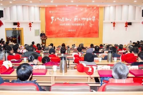 12月11日,学校在荷花池校区举行2024年教职工光荣退休仪式。校党委书记焦新安出席仪式并讲话,校长丁建宁致荣退贺词。焦新安、丁建宁共同为荣退教职工代表颁发纪念品并合影留念。校党委副书记周如军主持仪式。