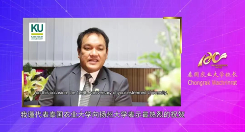 长期以来,扬州大学与各兄弟高校建立了良好的关系。英国南安普顿大学国际与全球事务副校长、德国埃斯林根大学校长、爱尔兰科克大学校长、日本九州工业大学校长、泰国农业大学校长等国外合作高校领导纷纷以“云致辞"的方式送来祝福。