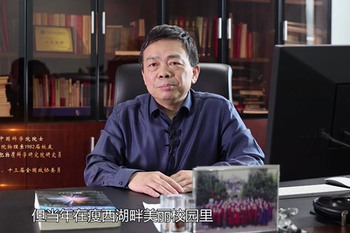 中国科学院院士、我校1982届校友万宝年代表全体校友为学校送上祝福。他在视频发言中深情回顾了在瘦西湖畔美丽校园里求学问道的4年大学时光。他说,在校的时光不仅给了大家受益终身的知识和能力,更铸就了大家自强不息、追求卓越的信念和精神,值得永远铭记和感恩。一代代扬大人秉承坚苦自立的校训精神,始终心怀“国之大者”,与时代同行,与祖国共进,用实际行动书写了敢为人先、砥砺深耕,迎难而上、春华秋实的华丽篇章。他坚信母校一定能在建设高水平大学的壮阔征程中创造出新的辉煌,并祝愿母校风华正茂、永远年轻,英才辈出、万象更新,继续书写无愧于时代、无愧于历史的崭新篇章。