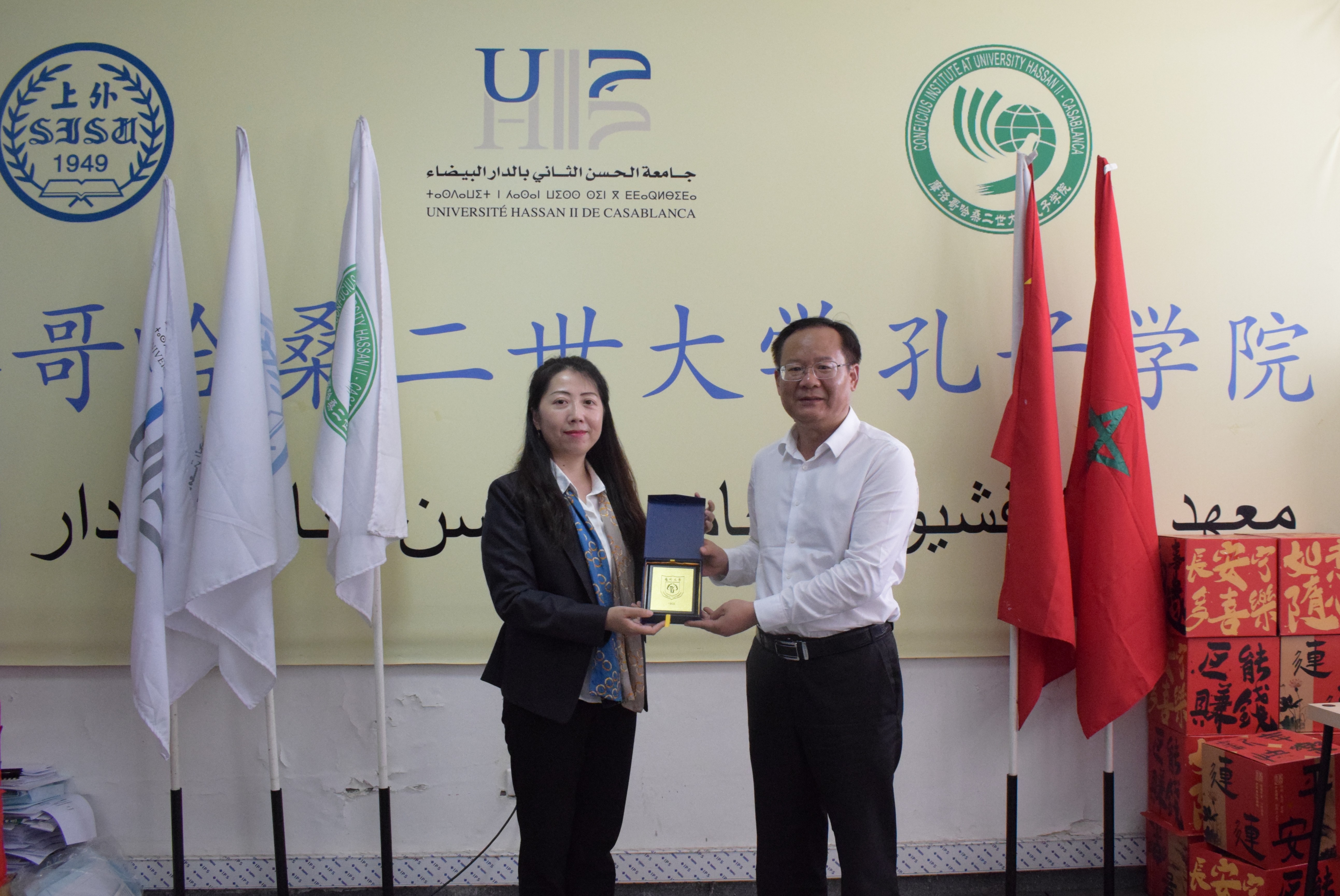 在卡萨布拉卡哈桑二世大学孔子学院,丁建宁介绍了学校的办学历史、学科专业和开展来华留学教育相关情况,特别是摩洛哥籍学生在校学习情况。丁建宁表示,希望通过加强交流,借鉴卡萨布拉卡哈桑二世大学孔子学院外汉语教育的经验,提升我校对外汉语教育规模和水平。