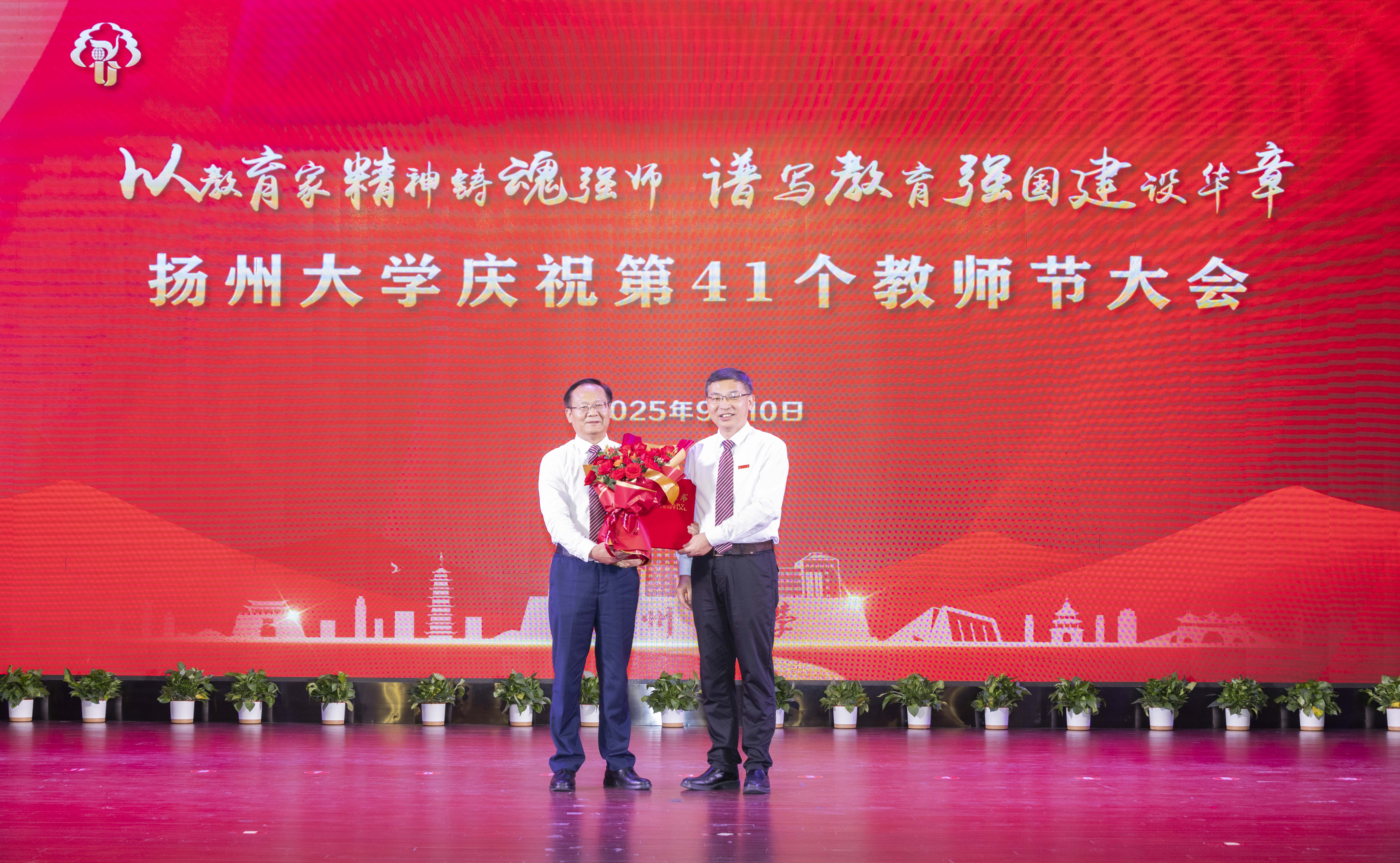 刘巧泉指出,“十四五”以来,学校深化综合改革、加快“双一流”创建,入选江苏高水平大学建设高峰计划A类建设高校,成为双省部共建高校,连续6次获评省属高校综合考核第一等次,高水平研究型大学建设取得坚实进展。他希望广大教师始终心怀“国之大者”,践行立德树人使命;秉持求是创新精神,坚守教书育人初心;永葆乐教奉献情怀,投身教育强国伟业。他强调,建设教育强国是新时代新征程全党全社会的共同责任,学校将持续健全工作机制、增强服务意识、加强教育引导、搭建创新平台,让广大教师安心从教、热心从教、舒心从教、静心从教,让全体教职工积极投身全员育人、全程育人、全方位育人,支持全体教职员工在争创一流中实现人生理想和价值追求。广大教师要牢记嘱托,以百年树人的战略眼光,以百舸争流的奋斗姿态,勠力同心、锐意进取,为加快建设教育强国、实现中华民族伟大复兴贡献扬大力量。