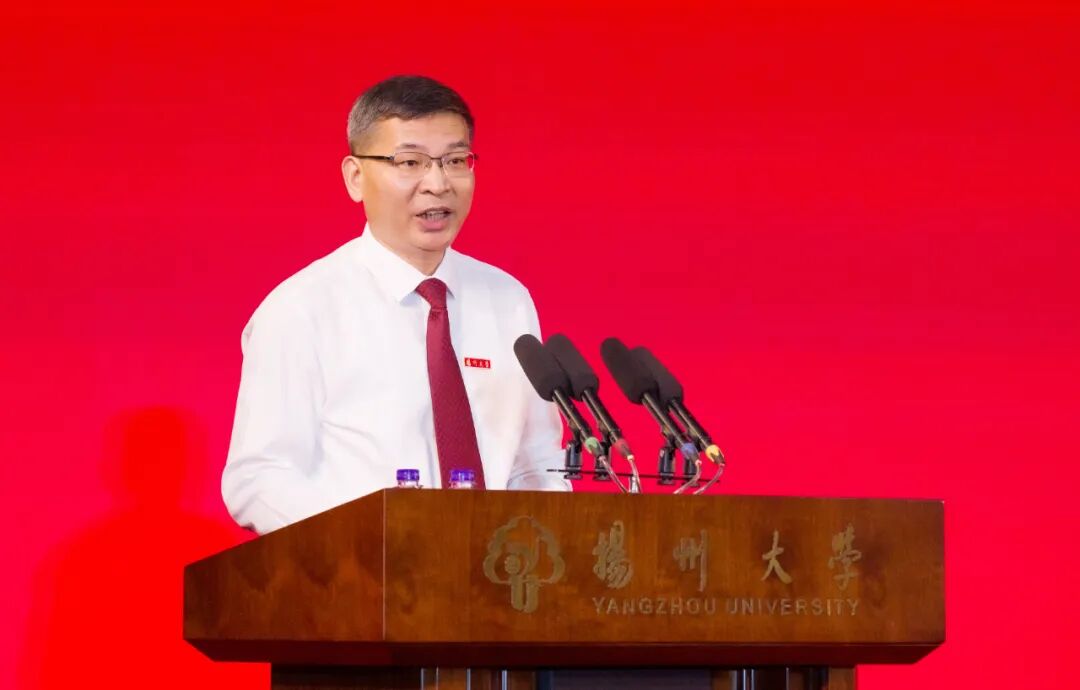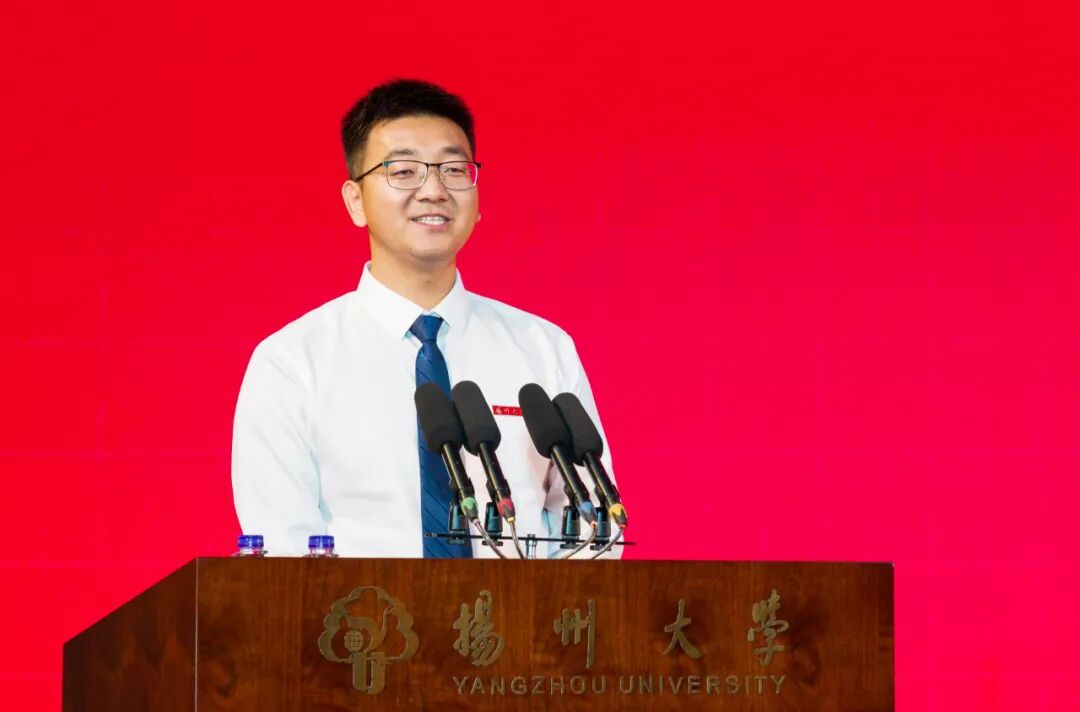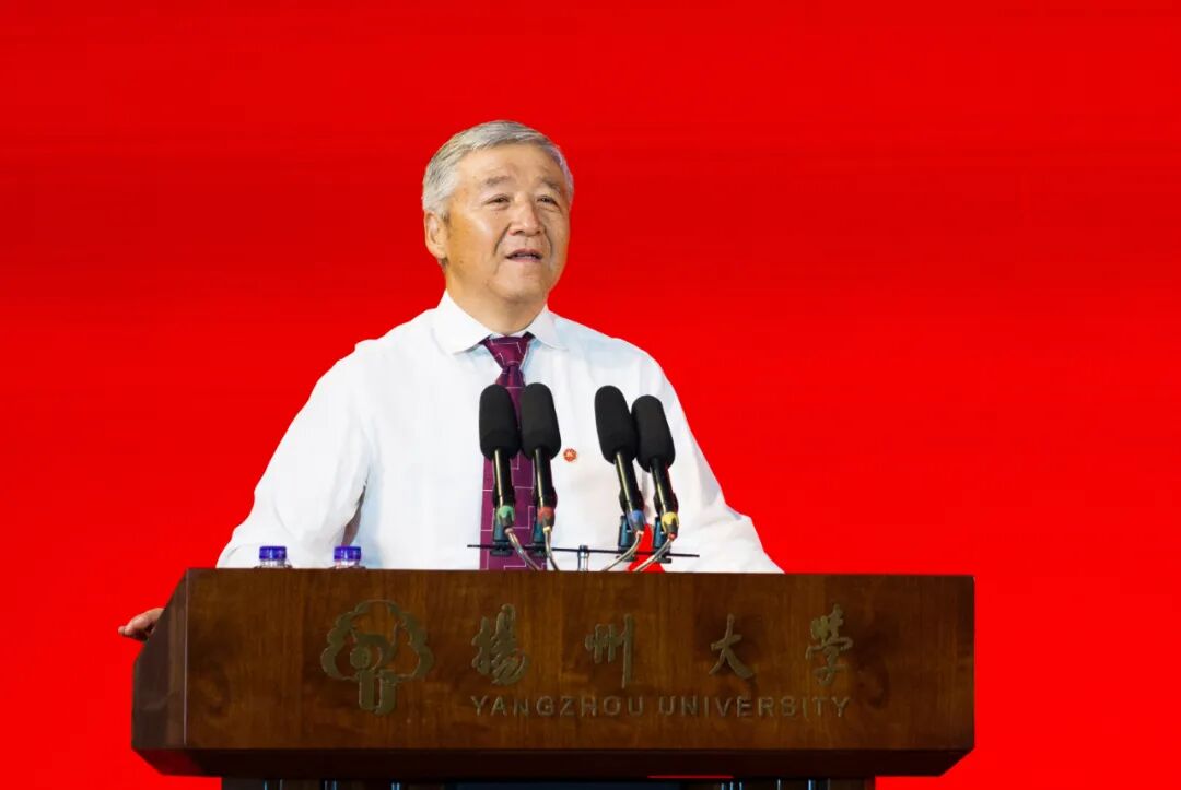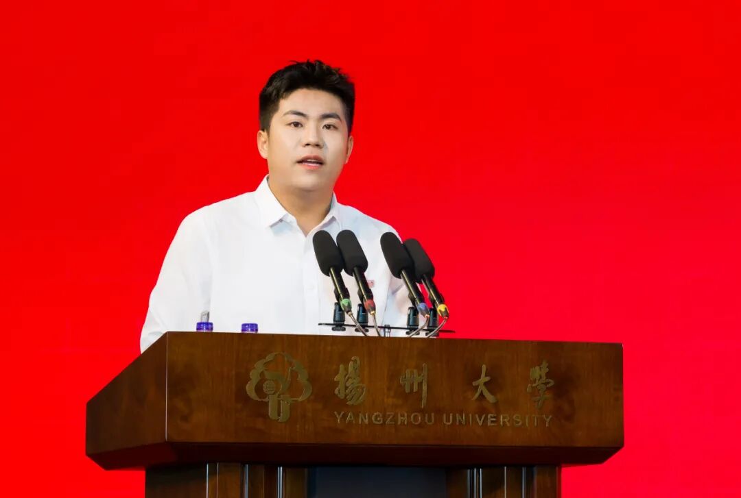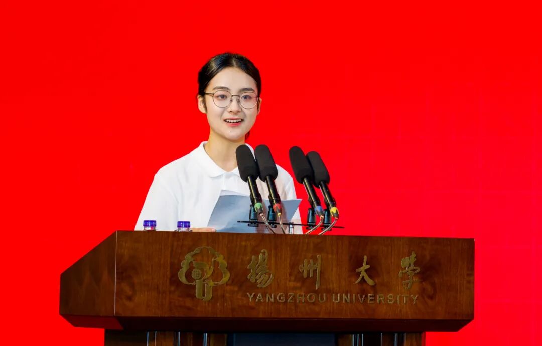 汪晖以《万舸此中来,连帆过扬州》为题,分享了自己和母亲两代人与扬大的渊源,并围绕“求知、成长、友谊、爱情”四个关键词,鼓励同学们以旺盛的好奇心与坚韧不拔的耐力为求知路上的双轮,在专业里深耕,在通识教育中拓宽视野,在人际交往中成长。教师代表、农学院教授马斌鼓励同学们明确人生目标,培养独立探索与解决问题的能力,主动接触新科技、拓展新视野。老生代表、商学院任光赟同学,新生代表、物理科学与技术学院(集成电路学院)金梓凝同学在发言中表达了报效祖国的初心与坚定前行的决心。
