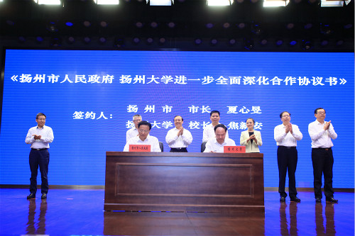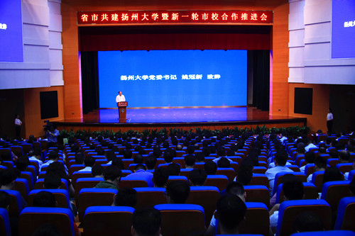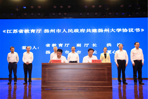 9月6日上午,江苏省教育厅与扬州市人民政府共建扬州大学暨新一轮市校合作推进会在扬子津校区文体馆三楼剧场隆重举行。会议签署了《江苏省教育厅、扬州市人民政府共建扬州大学协议书》《扬州市人民政府、扬州大学进一步全面深化合作协议书》等五项协议。省教育厅副厅长洪流、我校党委书记姚冠新出席会议并致辞,校长焦新安介绍有关情况。省科技厅副巡视员景茂,省卫健委副主任、省中医药管理局局长朱岷,扬州市市长夏心旻、市政协主席陈扬,省财政厅教科文处处长朱忠迎,中国工程院院士、我校张洪程教授等出席会议。扬州市委副书记孔令俊主持会议。