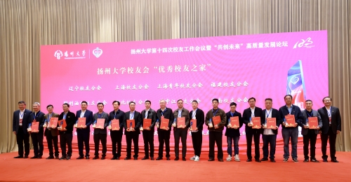 11月16日,扬州大学第十四次校友工作会议暨“共创未来”高质量发展论坛在宿迁举行。校党委书记、校友会会长丁建宁,校长刘巧泉出席讲话并共同颁发扬州大学校友会“优秀校友之家”荣誉证书和奖杯。校纪委书记、派驻监察专员邱庆峰,副校长韩杰,校友会副会长刘祖汉、陈耀、黄建晔、胡效亚等出席会议。