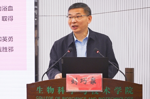 近日,校长刘巧泉为生物科学与技术学院生命科学强基班2025级新生和研究生新生代表讲授“形势与政策”课。