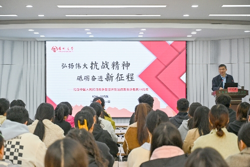 刘巧泉以《弘扬伟大抗战精神 砥砺奋进新征程——纪念中国人民抗日战争暨世界反法西斯战争胜利80周年》为题,从“中国人民抗日战争为世界反法西斯战争胜利作出重大贡献”“从抗日战争中汲取民族复兴的强大力量”和“伟大抗战精神是中国人民弥足珍贵的精神财富”三个维度进行讲授。他指出,伟大抗战精神蕴含的爱国情怀、民族气节、英雄气概、必胜信念,具有跨越时空的巨大力量,对于教育引导新时代青年挺膺担当具有重要意义和价值。