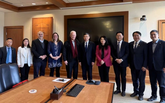 在俄克拉荷马州立大学,刘巧泉与该校副校长兼农业与自然资源学院院长Jayson Lusk亲切交流,双方围绕农科师生互派、高水平科研合作开展了深入的交流,并与国际事务相关负责人就留学生教育、合作办学与学分互认等方面交换了意见并达成了共识。代表团还考察了该校国际交流中心、图书馆、学生学习中心、小麦育种研究中心和公共实验平台等场所。
