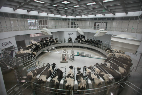 袁日进指出,扬州大学生态智慧牧场应用物联网和智能化设施设备,采用国际先进的养殖工艺,推行现代化科学养殖技术,实现了奶牛养殖的自动化生产、智能化管理和资源化利用,是我省奶业转型升级的方向,更是打造民族奶业、提升奶业国际竞争力的必由之路。他希望,生态智慧牧场坚持绿色发展理念,秉持“养好牛、产好奶”的目标,以优质乳工程启动为契机,大力推行生态健康养殖,着力强化全过程质量管控,努力建设成为国内一流、国际先进的现代化牧场和综合型示范基地,为消费者提供更加优质、放心的“扬大牛奶”,为生产者展示最新的科技成果,示范带动苏中地区奶牛养殖再上新台阶。