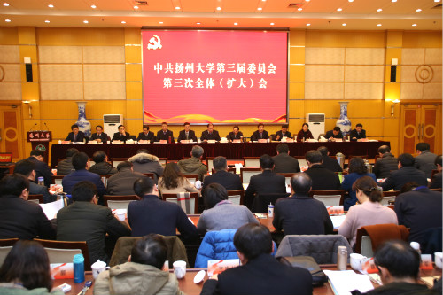 1月20日,校党委三届三次全体(扩大)会议在荷花池校区教学主楼二楼多功能厅召开。校党委书记姚冠新主持全会并代表党委常委会作了题为《解放思想、聚势突破、创建一流,更高质量书写高水平研究型大学建设新篇章》的工作报告。校领导班子成员进行了述职述廉,各学院和机关各部门、直属单位、研究院分别以大会交流和书面形式汇报了2018年度工作。党委委员表决通过了大会决议,与会人员对校领导班子成员和各学院、机关各部门、直属单位的年度工作进行了测评。校党委副书记、校长焦新安主持学院年度工作交流会。