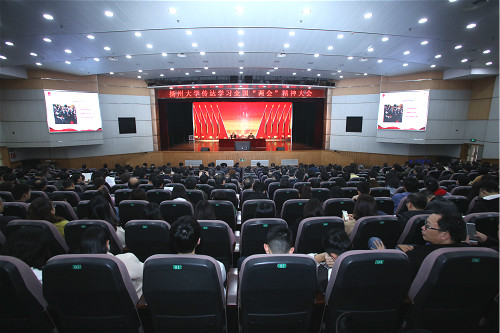 3月20日下午,学校在荷花池校区大学生活动中心三楼小剧场召开传达学习全国两会精神报告会。校党委书记姚冠新主持会议并讲话,第十三届全国人大代表、校长焦新安传达全国两会精神。