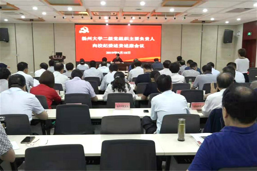 学校召开二级党组织主要负责人向校纪委述责述廉工作会议 6月18日,学校在瘦西湖校区新教学楼南楼二楼报告厅召开二级党组织主要负责人向校纪委述责述廉工作会议。校纪委书记周琴主持会议并讲话。
