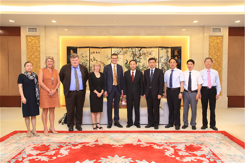 澳大利亚查理•斯窦大学校长Andrew Vann一行来校访问 6月18日上午,澳大利亚查理•斯窦大学校长Andrew Vann、商业公正与行为科学学院执行院长Tracey Green、管理与营销学院院长Mark Frost、项目开拓办公室主任Sarah Ansell一行访问我校。校长焦新安、副校长刘巧泉会见来宾。