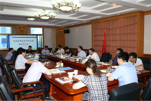 7月26日上午,校党委理论学习中心组举行集体学习会,专题学习传达习近平总书记在“不忘初心、牢记使命”主题教育工作会议上的重要讲话精神、省委娄勤俭书记在全省“不忘初心、牢记使命”主题教育动员会议上的讲话精神及全省教育大会精神。校党委书记姚冠新主持学习会。