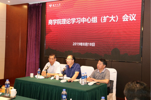 党办负责同志、商学院理论学习中心组全体成员、部分教师代表等50余人参加会议。