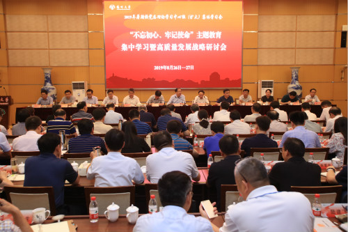 学校举行2019年暑期校党委理论学习中心组(扩大)集体学习会 8月26日、27日,学校举行2019年暑期校党委理论学习中心组(扩大)集体学习会。会议主要围绕“不忘初心、牢记使命”主题教育集中学习暨高质量发展战略研讨这一任务展开。校党委书记姚冠新对新一届中层领导班子和中层干部作集体谈话,并作大会总结讲话。校长焦新安作题为《守高水平初心 担高质量使命 以更高标准更实作风加快内涵发展》的专题报告。校党委副书记叶柏森主持分组讨论情况汇报会,全体校领导和党委常委出席集体学习会。