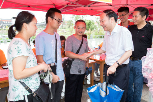 在迎新报到点,焦新安详细了解广陵学院迎新工作进展及新生报到情况,并与新生及家长亲切交谈。他对即将就读于机械设计制造及其自动化专业、身患糖尿病的谈新宇同学表示关心,详细询问其病情及困难,并鼓励其要养好身体,积极面对未来,通过努力奋斗实现人生价值。