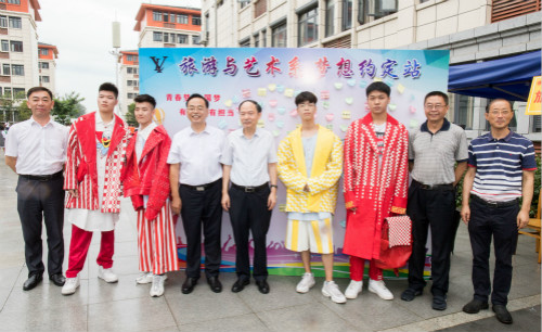 在迎新现场,焦新安还饶有兴致地观摩了极具专业特色的智能小赛车现场演示以及服装皮具设计获奖作品展等,并在“梦想约定站”签名墙前与新生及家长合影留念。