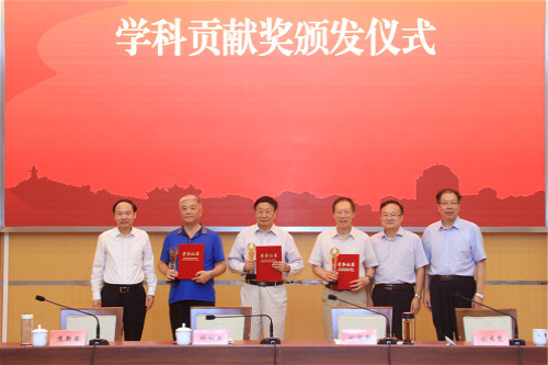 姚冠新、焦新安、杨树兵为老一辈学科带头人颁发学科贡献奖证书、奖杯,向他们为学科建设和各项事业发展作出的重要贡献表示衷心的感谢和崇高的敬意。姚冠新、焦新安为新一届学科带头人颁发聘书。