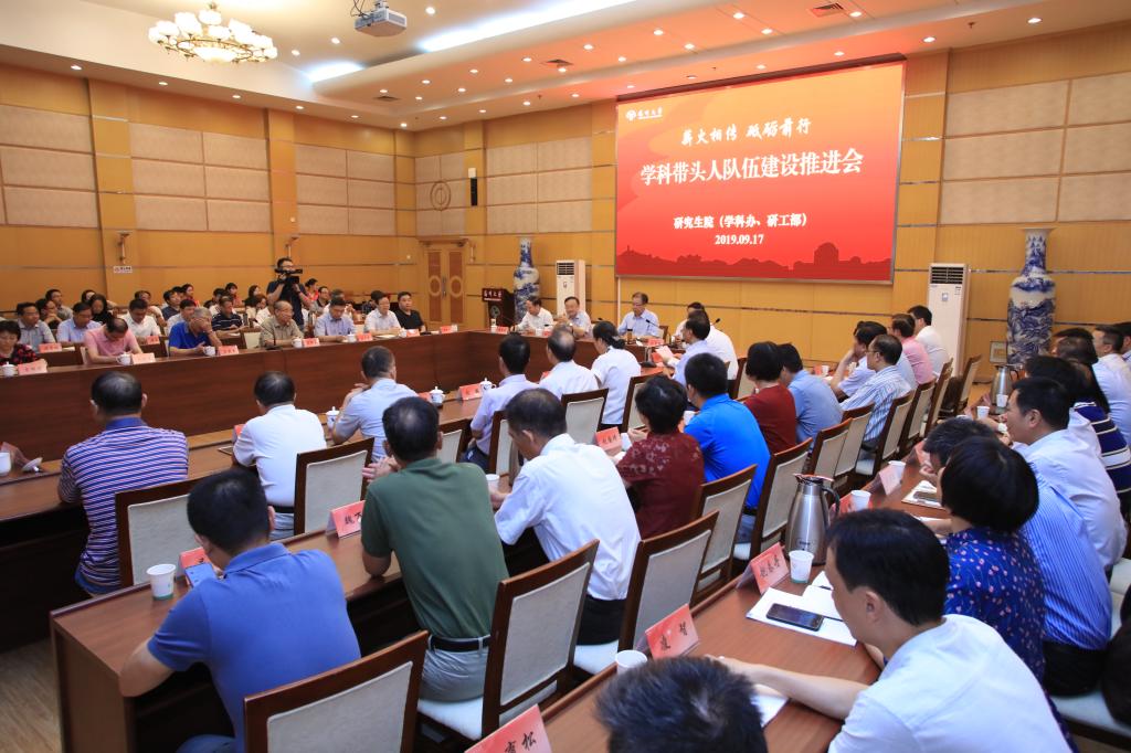 9月17日,学校在荷花池校区教学主楼二楼多功能厅召开学科带头人队伍建设推进会。校党委书记姚冠新、校长焦新安,副校长黄建晔、陈国宏、陈亚平、俞洪亮、刘巧泉,省教育厅研究生处处长杨树兵,中国工程院院士、兽医学院刘秀梵教授出席会议。