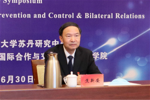 我校苏丹研究中心举办中苏抗疫合作与中苏关系视频研讨会 6月30日,中国驻苏丹使馆、扬州大学苏丹研究中心共同举办中苏抗疫合作与中苏关系视频研讨会。中国驻苏丹大使马新民,校长焦新安,苏丹共和国驻华大使馆代办伊萨姆丁•凯德尔,教育部高校国别和区域研究工作秘书处主任罗林等出席开幕式并致辞。副校长俞洪亮、刘巧泉出席会议。