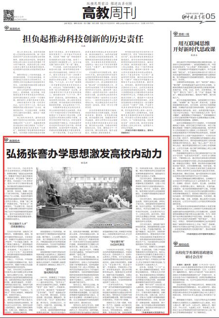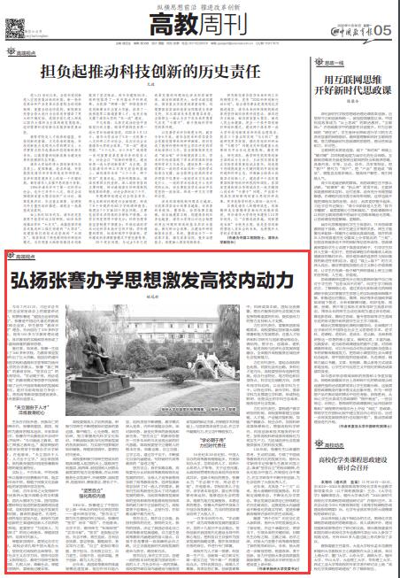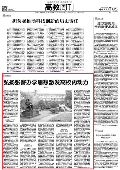 11月30日,校党委书记姚冠新在《中国教育报》“高教周刊”发表题为《弘扬张謇办学思想激发高校内动力》的署名文章。文章从淬炼教育初心、强化高校内涵、力扛时代责任等3个方面,深入阐述了张謇办学思想对当前高等学校奋力争创一流、勇担高等教育强国建设使命的重要启示。