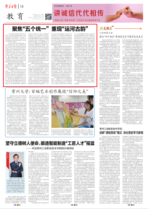 6月21日,校党委书记姚冠新在《新华日报》发表题为《聚焦“五个统一” 重现“运河古韵”》的署名文章。文章围绕实现“古运河重生”的目标,提出加强“五个统一”,从五个方面深入阐述了逐步实现“古运河重生”目标的有效路径。